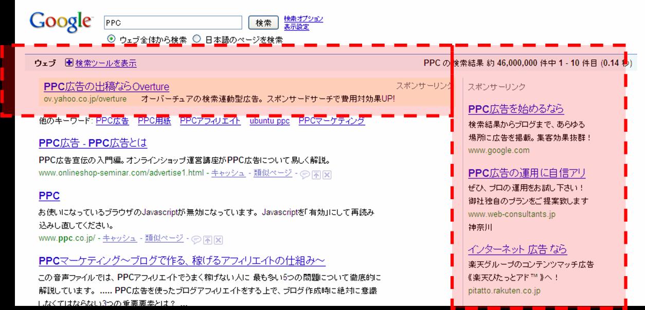 検索結果において、PPC広告とは別に